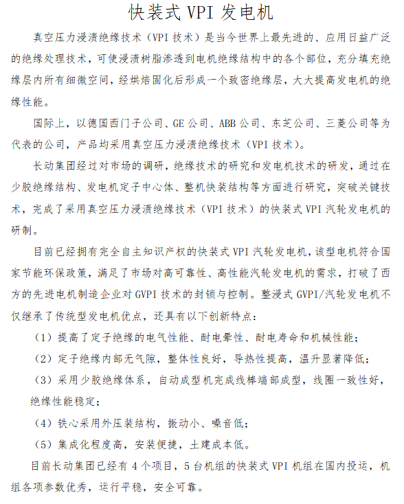 快装式VPI发电机